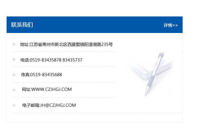 傳真:0519-83435688    郵編:213135    網址:WWW.czjhgj_com.sdfwhb.com    電子郵箱:JH@czjhgj_com.sdfwhb.com